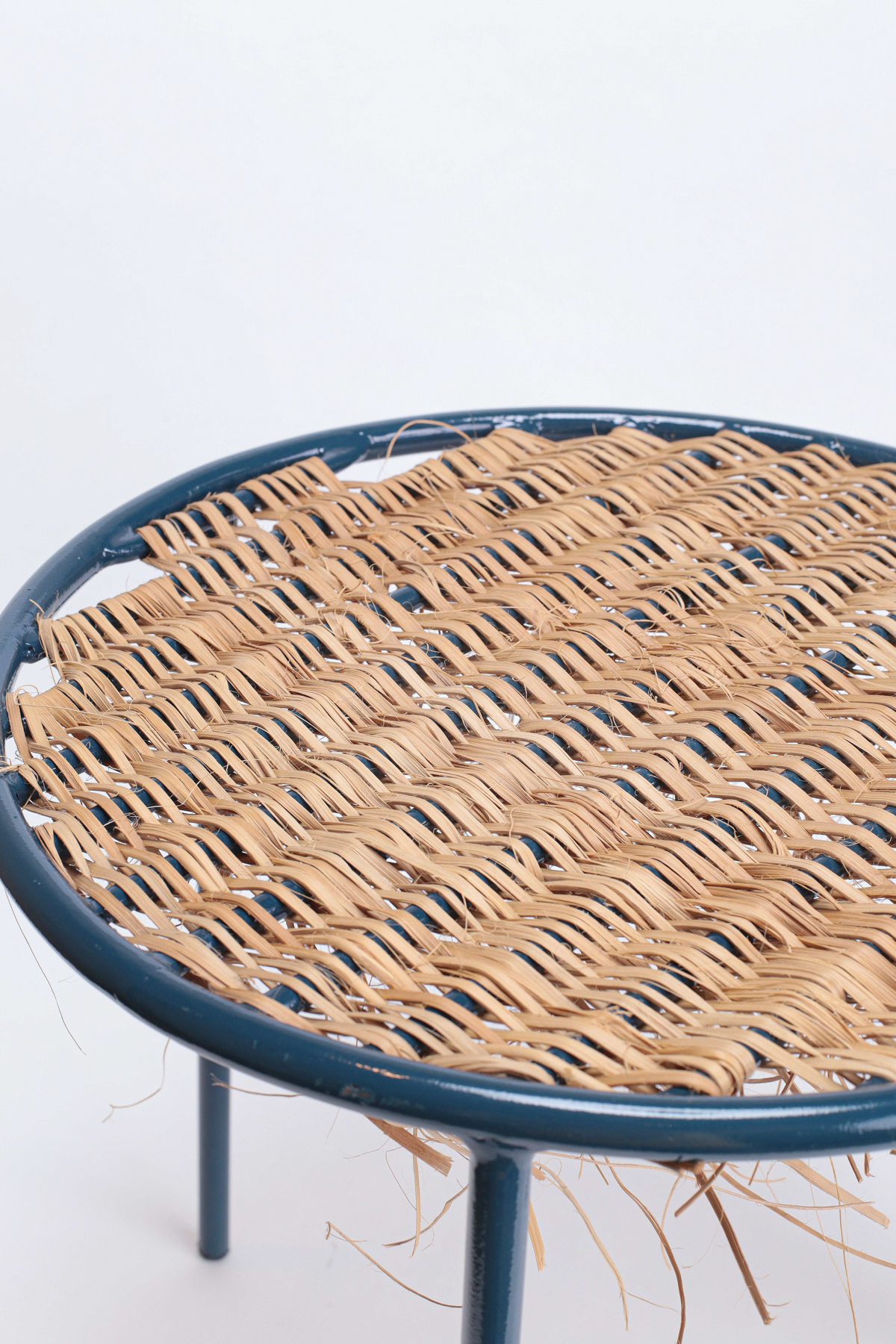 Aço Carbono com pintura eletrostática e trama feita à mão em miolo de junco.