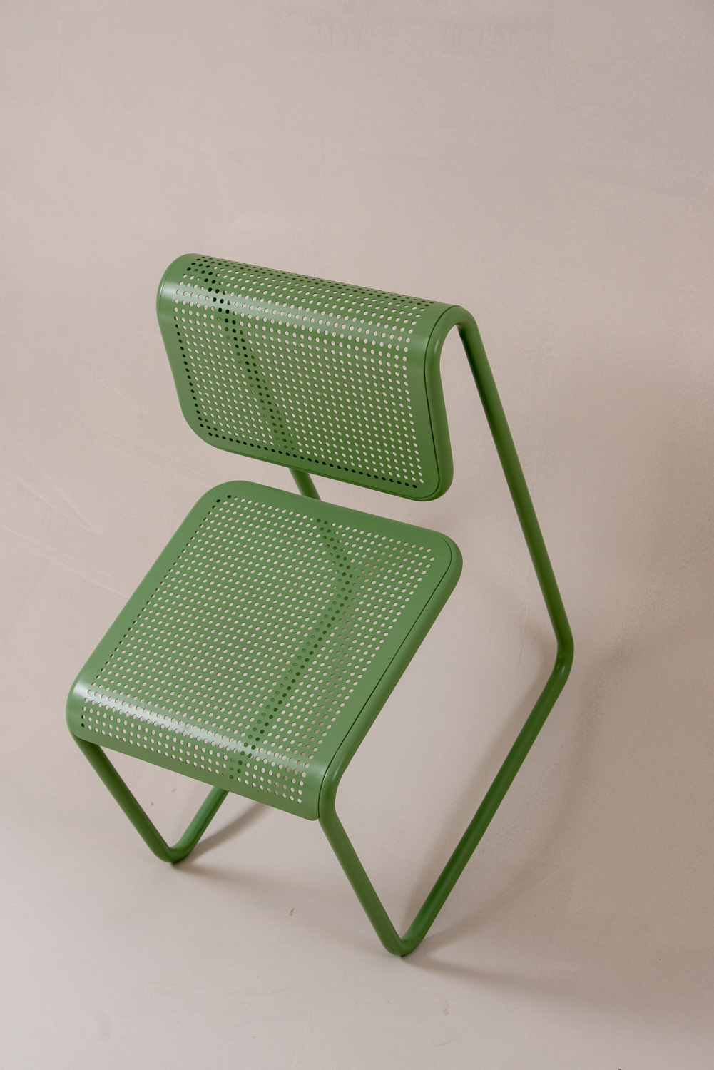 Estrutura em tubo de aço carbono curvado, acabamento em pintura eletrostática multicamadas com toque suave e alta durabilidade. Assento e encosto em chapa de aço perfurada, conformada a frio, integrados à estrutura tubular. Disponível também na versão em aço inox para uso em áreas externas, com resistência a intempéries. O design leve e contínuo proporciona estabilidade e estética contemporânea. Produto totalmente personalizável quanto a cores e acabamentos, ideal para ambientes residenciais, comerciais e institucionais que valorizam funcionalidade, resistência e linguagem visual moderna.