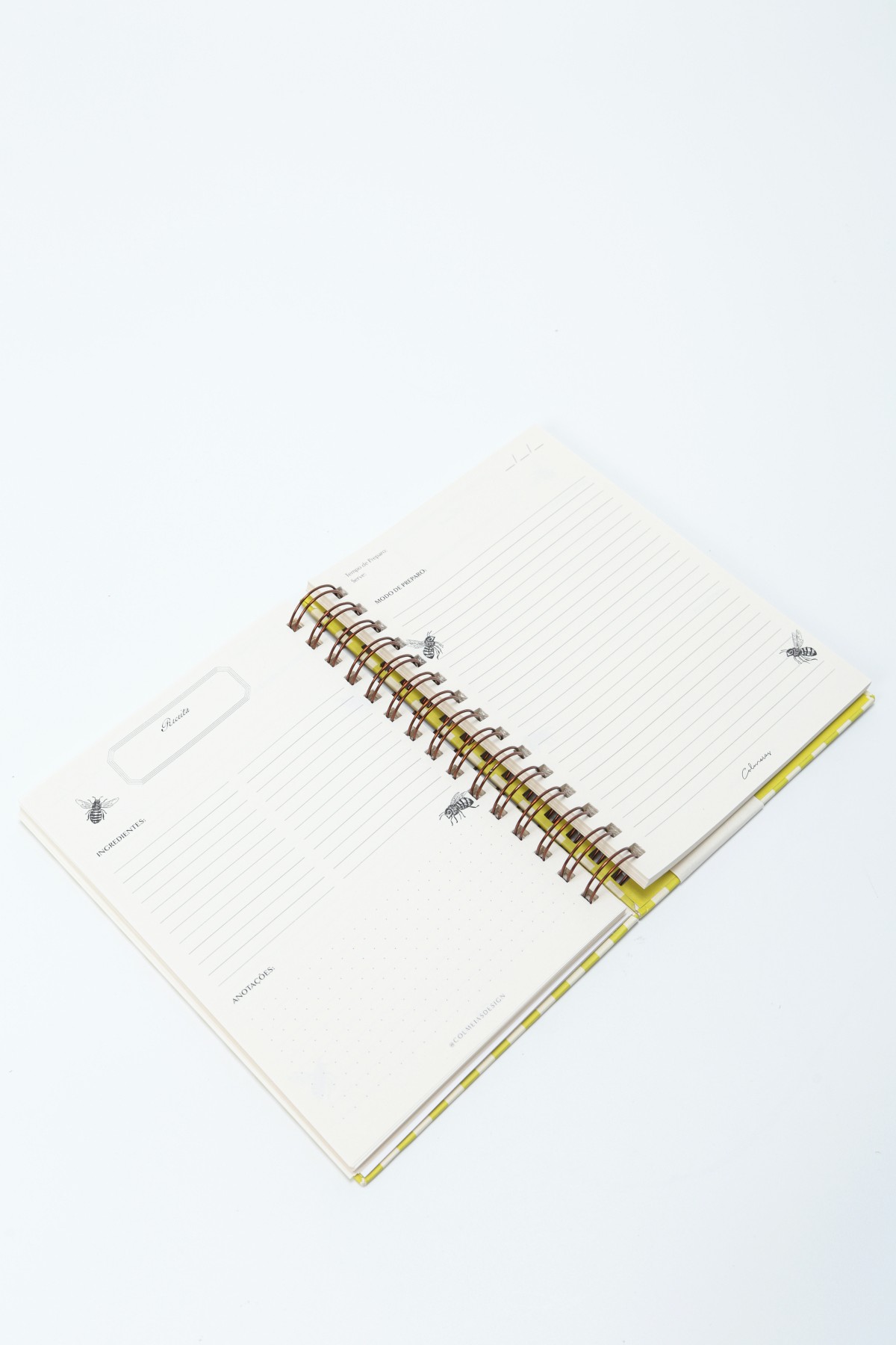 Caderno de receitas personalizado com espiral metálico wire-o bronze